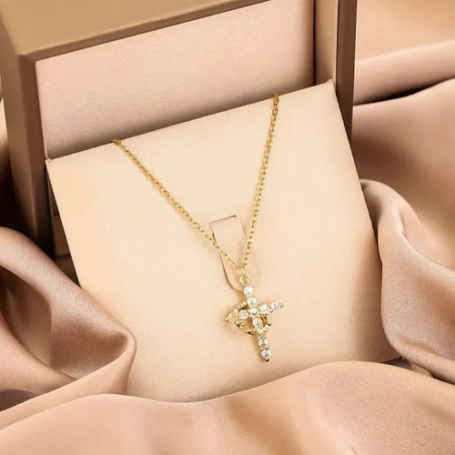 Joyful Wings Cross & Heart Stainless Steel Necklace
